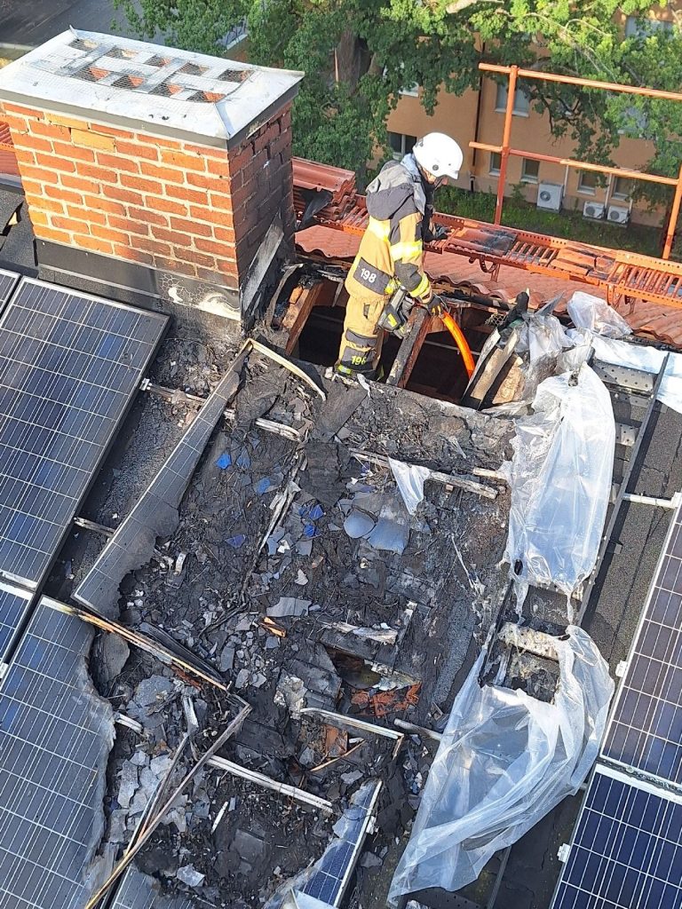 Natten den 4 juli började det brinna på taket till ett flerfamiljshus i Emmaboda. Flera familjer evakuerades och släckningsarbetet pågick under många timmar. För SVTs lokalnyheter beskrev räddningstjänsten att insatsen var komplicerad eftersom taket var täckt med solcellspaneler.