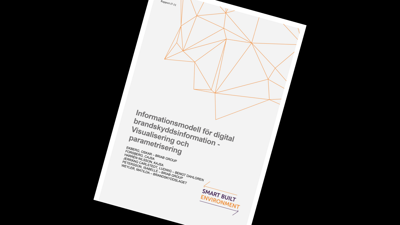 Rapporten Informationsmodell för digital brandskyddsinformation – Visualisering och parametrisering, framtagen av Briab i samverkan med Bengt Dahlgren och Brandskyddslaget, presenterar ett förarbete till en möjlig framtida standard för hur brandskyddsinformation kan organiseras i BIM-miljö.