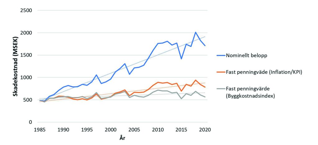 Den kostnaden är relativt konstant över tid när den görs jämförbar med hänsyn till olika index, men vad består kostnaderna av och hur kan vi påverka dem? Det har Lunds tekniska högskola studerat i en pilotstudie tillsammans med RISE, Räddningstjänsten Storgöteborg och Brandskyddsföreningen Väst [1].