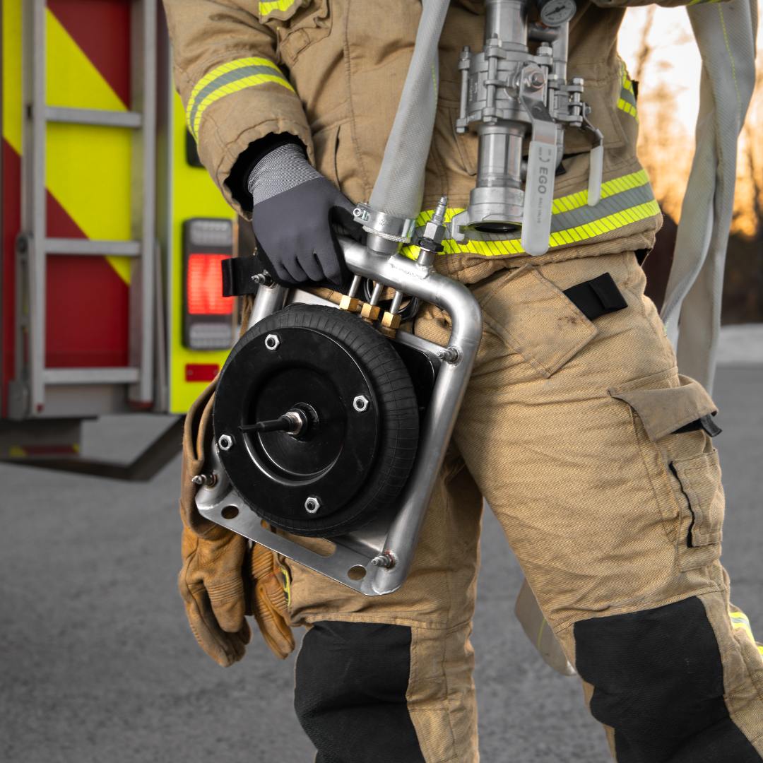 Verktyget kopplas till den släckningsutrustning som räddningsverken redan använder och drivs enbart med vattentryck. En fyra meter lång slang gör det möjligt att arbeta på säkert avstånd från fordonet.