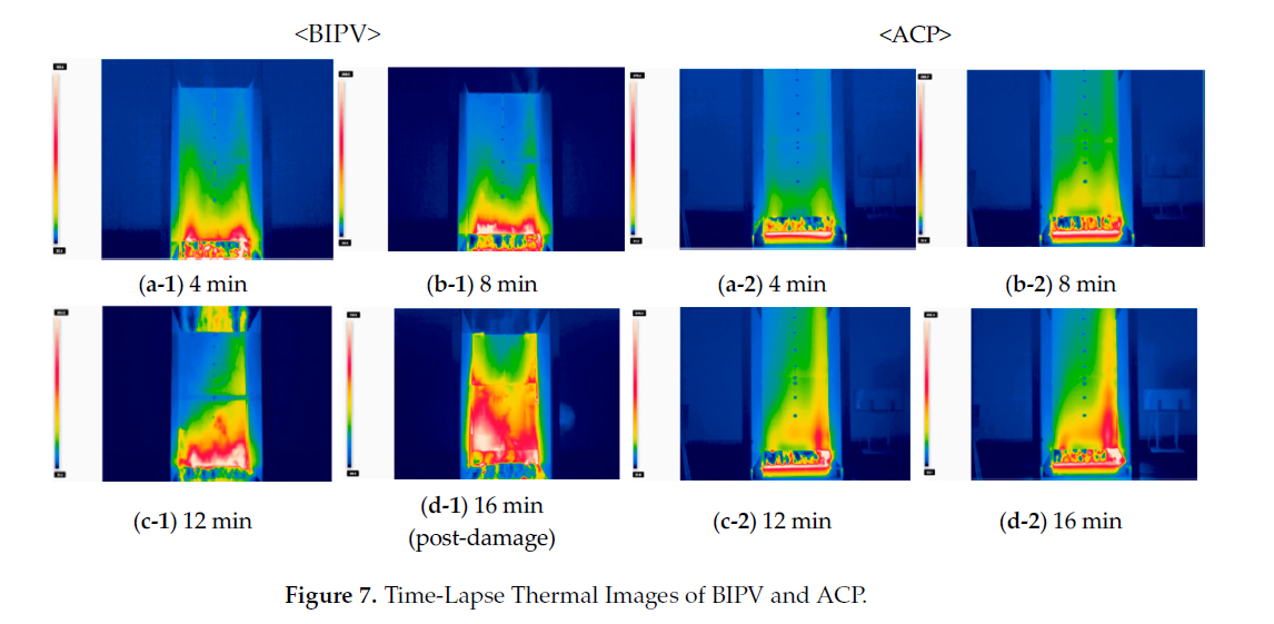 En central iakttagelse i studien är den roll som luftspalten bakom panelerna spelar. Temperaturmätningar visade att värme snabbt ackumulerades även på panelernas baksida, vilket indikerar en tydlig skorstenseffekt. Den ventilerade konstruktionen fungerar därmed som en accelerator för brandspridning. Det är inte enbart materialens brännbarhet som styr brandförloppet, utan den konvektiva värmetransport som uppstår i den vertikala luftspalten. Detta innebär att bedömningen av BIPV-fasader inte kan begränsas till produktklassning; montageprincipen är avgörande.